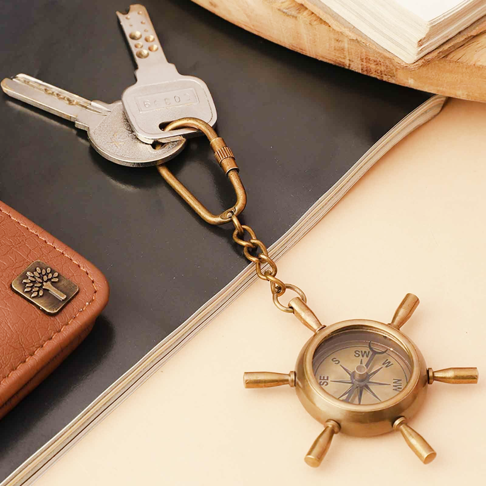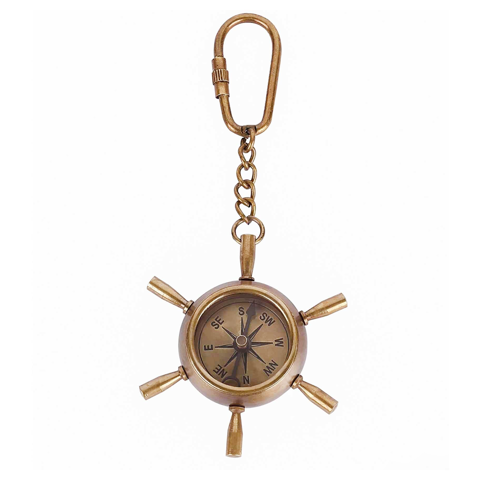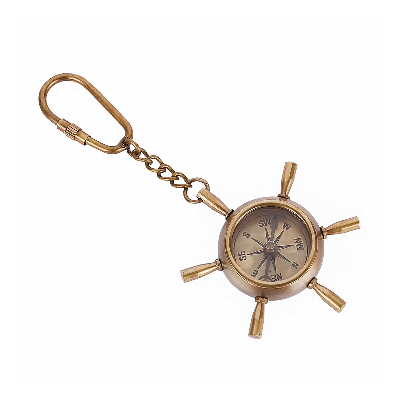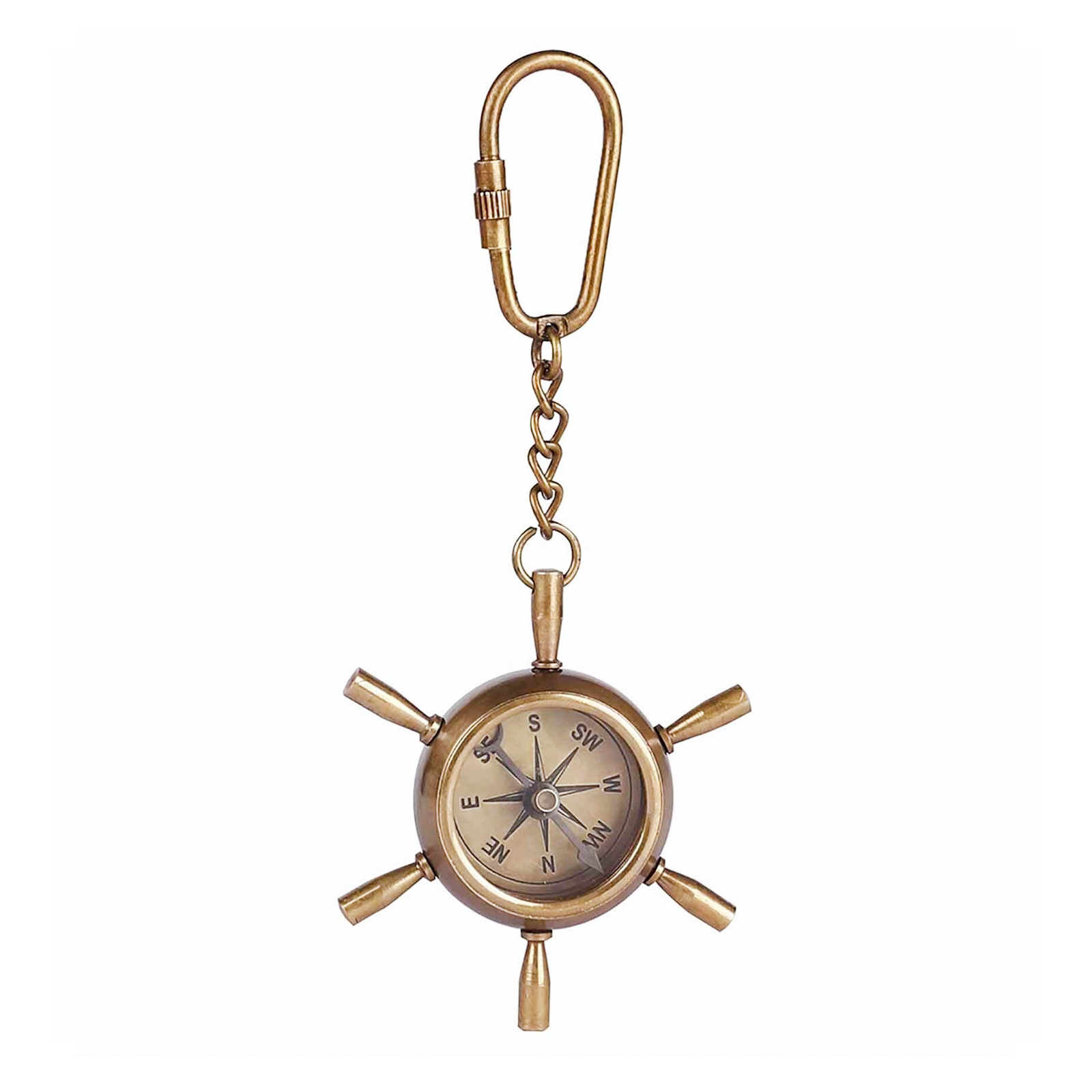 Brass Ship Wheel Compass Key Chain